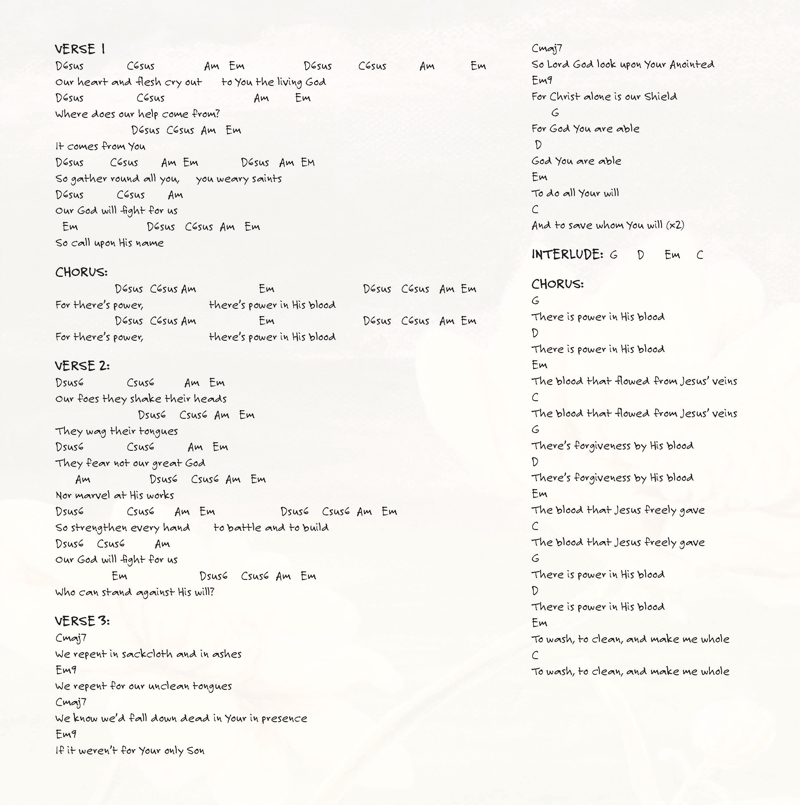 Nehemiah 4:20 says, “In the place where you hear the sound of the trumpet, rally to us there. Our God will fight for us.” This verse stuck out particularly to me during the Revitalize Series as I thought on this picture of God fighting for us and our severe need for His help. To think that our great God is fighting for us is an awesome thought. He knows we are needy and poor. He knows that we are tired and weary. And He fights for us! He cares for us when our world is falling apart, and comforts us in all of our afflictions. Sometimes we can lose sight of the fact God is fighting for us, or simply not believe He cares enough about our situation to care to fight for us, but ultimately we know God fights for us because of His only Son, Jesus. That is what I wanted this song to highlight, that God has fought for us by giving us Jesus who suffered, died, was buried, and then rose again! God has procured for us great power by the blood of His Son, by His very own blood. And when we repent and believe, because He has fought for us, we can rest assured that His work will be completed. We can rest knowing that if God has called us His own, nothing and no one can undo His claim over us. So though we are prone to wander, prone to err, we know that God is fighting for us, and no one will stand against His will being done in our lives as He perfects us in His holiness.